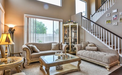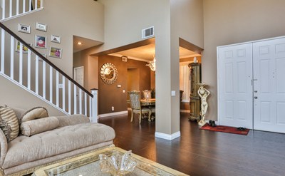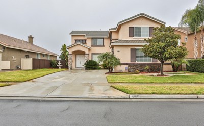 Beautiful Move in Ready Mountain Gate Home. This home features 4 beds, 2.5 baths, & 3 car garage. Enter to high ceilings & beautiful dark chestnut laminate wood flooring. This home features cased in windows throughout the downstairs & master bedroom and new carpet and paint throughout. The formal living room is light & bright with lots of windows. The dining room features upgraded baseboards & crown molding. Just off the dining room is the laundry room & butlers pantry. The butlers pantry features beautiful granite counter top with glass display door cabinets above & more cabinet space below & conveniently connects to the kitchen. The kitchen is spacious with lots of counter space & cabinets. The kitchen also features a large pantry, upgraded recessed lighting, granite counter tops, & stainless steel appliance. The family room features ceiling fan & beautiful fireplace with custom tile design & mantle. Head upstairs to the master bedroom that has new carpet, ceiling fan, custom paint with accent wall & high ceilings. The master also features 2 closets with mirrored doors & private large balcony. The master bathroom has 2 separate vanities, updated lighting, & separate shower & tub. The remaining 3 bedrooms also feature ceiling fans & new carpet. The upstairs hall bathroom has dual sinks & shower & tub combo. The backyard is nicely landscaped with covered patio. This home is walking distance to a large greenbelt, several parks & schools & is close to shopping & freeway access.