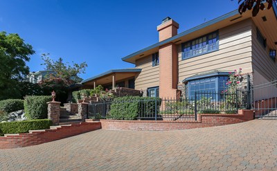 The backyard is built for entertaining with a tiered landscape, inviting Water Fall Pool and Spa, covered Gazebo with adjacent Pizza Oven, Stone work in front and back, 4-car Garage and Motor Court With Electric Gates, Flat Back Yard areas With Fruit Trees, Rose Gardens, Grass and Stone play areas!