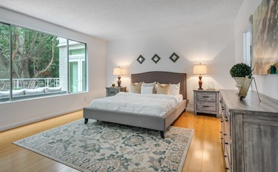 Front facing large unit, almost 1,500 sq ft, with 2 bed and 2 bath in prime Beverly Hills 90210 location. Over-sized living rm with wet bar open up to a sun-room with a patio on each side. Approx 570 sq ft of patio deeded to this unit makes this home very indoor/outdoor friendly. Perfect home for families and for entertaining guests. Large master with dual lg closets and a bath with double sinks, spa like tub and lg stand shower. Close proximity to BH shopping, house of worships, markets, coffee houses, restaurants and with the legendary Beverly Hills school systems. Staged and easy to show.