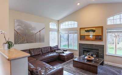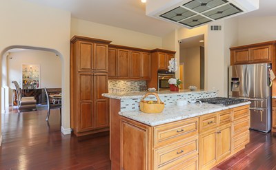 Living room with fireplace, stunning view of the back yard, Bar, fireplace, adjacent to the left is large Formal Dining room that leads to fully upgraded cook’s Kitchen where you can exercise your passion as a chef, and huge island topped with stunning slab of granite stone, 6 burner Wolf Range top , stainless steel appliances , designer back splash, and custom built cabinetry, with plenty of room for breakfast area that is open to a large family room with fireplace, vaulted ceiling, volume windows to bring in the natural light throughout.