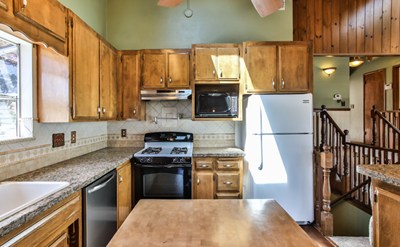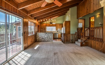 Beautiful San Moritz level entry home. Soaring wood beamed ceilings over an open concept kitchen and living area. Newly remodeled kitchen and breakfast nook boast granite countertops and rich bamboo hardwood floors. Skylights and large windows fill the home with natural light. Three large rebuilt decks enjoy the stunning panoramic view with plenty of room for entertaining. Fenced backyard includes terraced landscaping with healthy plants and trees. Additional 986 sq foot basement complete with shelving is perfect for storage. Two car attached garage and county maintained road make this a commuter friendly location.
