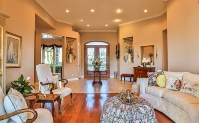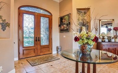 Nestled on one of Temecula’s most desirable cul-de-sacs this luxury home has THE WOW FACTOR! it sits on 2.3 acres, 4590 sq. ft, with 5 bedrooms (5th bedroom/executive office), 3 ½ bathrooms. Home offers the ultimate in privacy with beautiful wrought iron gates at the entrance. Features: Two master bedroom suites, each on opposite sides of the home. Beautiful tile and natural wood floors flow throughout. Crown molding, solid wood 8 ft doors, and custom cabinetry are just a few of the many upgrades. At the heart of the home is a stunning gourmet kitchen with Alder cabinets, granite counters and Viking professional series stainless-steel appliances, which includes: 48” gas range with convection oven and hood, refrigerator/freezer, and trash compactor. Two islands adorn the kitchen; one for food preparation and the other for family and/or guests. There is a large walk-in pantry as well as a wine room with beautiful built-in cabinetry and wine racks for the wine connoisseur. The kitchen opens to a great room with 12 ft. ceilings, custom built-in cabinets, and granite fireplace. The master suite has coffered ceiling, large sitting area with French doors leading to the backyard patio. The splendid backyard is beautifully landscaped and designed for entertaining; it features: spacious sitting areas, meandering paver stone pathways lined with rose bushes, outdoor gas fireplace, gas fire pit, built-in gas grill, and lovely swimming pool. This stunning property is just minutes from town, yet offers the tranquility of living in wine country. Get the best of both worlds!