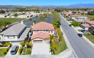 This amazing house HAS IT ALL!!! The home is located on a corner lot on a cul-de-sac and has a lovely semi-private front patio. Upon entry you are faced with two-story ceilings and the formal living and dining rooms. Kitchen offers granite counters, island with pendant lighting above, and upgraded cabinetry. Great room off the kitchen is a large open space with a fireplace and lots of windows that view the magnificent backyard. And to top it off, there is a bedroom and full bathroom downstairs. Upstairs there is a 360-degree open loft with lots of storage and a built-in desk space. Master bedroom features a double-door entry and a big master bath with plenty of space. Bedrooms are very spacious and have mirrored closet doors and ceiling fans throughout. Upstairs laundry room is a bonus feature for this fantastic home. Once outside, the backyard is a large open space with pool, custom planters, stamped concrete, and plenty of space for furniture, BBQ, and entertaining. Energy efficient pool pump and some LED lighting are an added bonus. This home definitely offers all the great amenities and has so much space inside and out for families large and small. Don't miss your opportunity, this home is going to sell fast!!!