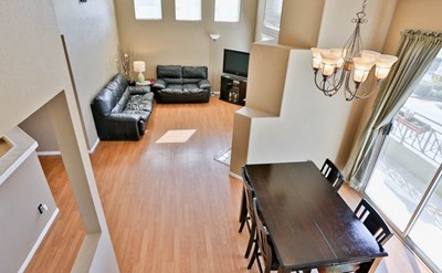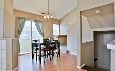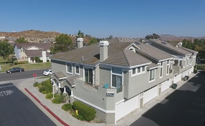 Fantastic opportunity to own in Corona! This is the perfect starter home with 2 bedroom + loft, 2 bathroom, 2 car attached garage and low HOA dues. Pull into the attached 2 car garage and walk up the steps to your open floor plan with a kitchen that opens to the dining room and family room. The family room and dining room feature laminate wood flooring and high cathedral ceilings. Located just off the dining room is a spacious balcony that has just recently been resurface and is perfect for entertaining and Bar-B-Quing. The Kitchen conveniently opens to the dining area and features tile flooring and a brand new dishwasher and new stove with built in microwave. Head down the hall to the spacious master bedroom that has new carpet, private balcony, cathedral ceilings and master bathroom. The master bathroom has beautiful slate tile flooring, dual sinks and walk in closet. The second bedroom also features brand new carpet. The second bathroom features more of the beautiful slate tile flooring. Don't forget about the loft! This space also has the same beautiful laminate flooring and is perfect as a playroom or man/woman cave! The association features a beautiful gate pool & spa. All of this in a great location of Corona, close to schools, parks, shopping, restaurants and easy access to both the 91 and 15 frwy. We know you've heard it before, but this one truly won't last long!