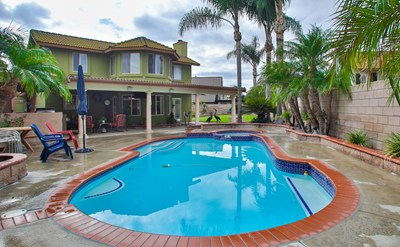 PRIDE OF OWNERSHIP! Welcome to this spacious 4 bedroom 3 bath beauty in the highly desirable area of Chino. As you walk through the front door you will see a spacious living room and dining room combo. From there you can enter the kitchen which has been updated with plenty of storage and counter space, granite countertops, custom backsplash, bar seating and beautiful wood floors that flow into the family room. The family room features a beautiful brick fireplace to enjoy on chilly Fall nights and built-in bookshelves! As if it couldn't get any better, there is one bedroom and bathroom downstairs!! Upstairs you will find two additional bedrooms and the spacious master suite which includes a stand-alone shower and oversized tub! Adding to the already impressive list of features is the gorgeous backyard with pool, spa, covered built-in BBQ, pizza oven, and large park-like lawn! Custom roll-up awnings.This home is truly an entertainer's dream!!