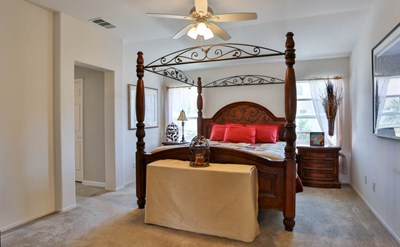 Beautiful property with endless possibilities! Home features 4 bedrooms + office (downstairs) + loft and 3 full bathrooms. Office downstairs can easily be converted into a 5th bedroom since the bathroom is already a full bath. Bedrooms are spacious and offer mirrored closets. Master bedroom has double-door entry, ceiling fan, his & her walk-in closets, dual vanity sinks, and separate bath and shower. Upstairs laundry room is a awesome feature as well. Kitchen offers cherrywood cabinets, granite counters with custom backsplash, stainless steel appliances, and a pantry. Kitchen is open to family room with large island and space for a big dining room table. Most of downstairs has bamboo flooring with complementing ceramic tile. Sliding glass door leads to covered patio and a large open backyard. Yard is partially landscaped and has a stone retaining wall at the bottom of the slope. Vinyl fencing completely surrounds the property for a nice clean look. Solar panels are completely paid off and are included in the sale of the home. Property is in great condition and has so much potential for any family. Don't wait to check it out!