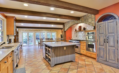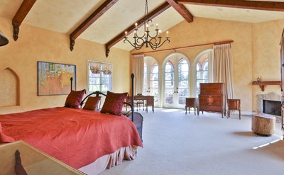 Beautifully maintained and preserved Spanish villa available for lease, long or short term. Home is a 5 bedroom 6 ½ bath plus a full separate guest house. At nearly 7,000 sq ft, this mostly furnished home features an elegant large formal living room w/ FP, reading room or den w/ FP and a spacious and elegant dining room which opens to patio/sitting area w/ FP. Gourmet kitchen with butlers pantry, center island and SS appliances with a breakfast/family room which opens up to an inviting back yard. Large outside sitting area, BBQ island and pool with spa make this grand home very entertainment friendly. Private and secluded. Mammoth size master with high ceilings & FP and dual large bath and closet wing. Balconies with tree and greenery views. Private guest rooms with baths and a helps wing with bath and private entrance. Can be leased short term at a higher rate.