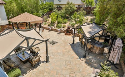 Immaculate Model home - located in Sycamore Creek!!! From the minute you walk in you see the beautiful upgrades , textured ceilings, beautiful floors, spacious 5 bed 4 bath 3,931 sq. ft. home with comfortable living space. Beautiful kitchen with granite countertops and a large island built in wine cooler, stainless steel appliances. Home features fabulous baseboards throughout and crown molding in the bedrooms. Bedroom and full Bath downstairs perfect for guest. Custom window blinds & drapes throughout. Living room with custom design ceilings, Family room with beautiful beam ceiling, and built in entertainment center. Master Suite with retreat and balcony, wainscoting, and crown molding. The master has Spa-like Bathroom with jetted tub large separate shower, two vanities’, marble counters and floors. A premium-sized backyard ready for gatherings with built-in BBQ and sink, 3 gazebos, water fall, and lighting, over $45,000 spent upgrading backyard.