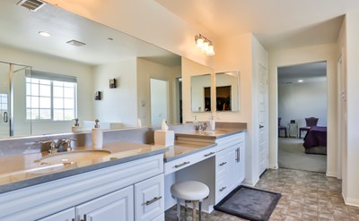The backyard is upgraded with artistic stamped concrete and fire bowls that keep any party large or small wanting to dance the night away! As you walk upstairs you will be greeted by a loft that could easily be a second family room. The master suite is on one side of the home, while the secondary bedrooms complete with their own bathroom are located at their own spacious wing of the home. This is a must see property to truly experience and appreciate the custom touches, you will want to stay and start living in this sweet villa the moment you walk through the door!!!!!