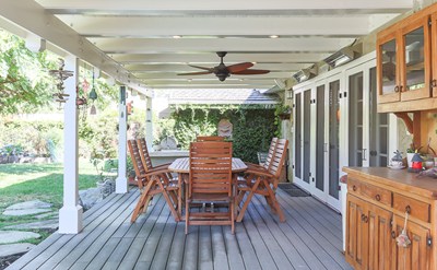 Old Agoura single story rambling ranch is remodeled to perfection. Classic front porch greets you to the beauty within. Absolute dream isle kitchen: custom cabinetry w/Ceasarstone and Carrara marble, subway tile splash, Wolf/Subzero, farmhouse sink. Wood flooring thru-out. 5 BR (one currently used as an office) and 3 BA - floorplan is ideal for home office, or if granny flat is needed. Great room has vaulted ceilings, fireplace; hearth and mantle match built-in entertainment center/cabinetry providing ample storage and economy of space. Private backyard: covered lanai, Trex deck, built in BBQ and sparkling pool with stone surround. 2 car garage plus RV parking. Walk to parks, shopping. Acclaimed Las Virgenes schools. Seeing is believing.