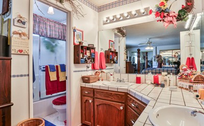 Good-sized home on half an acre and corner lot! This 4 bedroom/3 bath home is very spacious with larger than average bedrooms. Formal living, dining, and family rooms surround the open kitchen and are separated by a wall of open cubbies allowing the space to be more open. Kitchen offers white tile counters that match the white appliances. A bay window extends behind the sink, a perfect spot to grow your herbs and veggies. Custom laid tile floors complement the carpet. Kitchen also has counter-height seating and a nook area for a small breakfast table. The family room stands out in this home with wood beamed ceilings and a large brick fireplace with a raised hearth. Sliding glass doors lead to outside with an open-slate covered patio made of brick and stone. Single car garage is a drive-thru to the backyard. Backyard is primarily dirt but is a clean slate for you to customize. There is so much space for you to have your dream backyard! This home is priced to sell and will not last, so don't wait to come check it out!!!