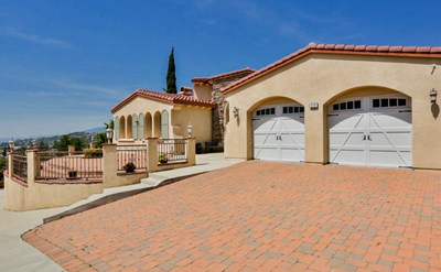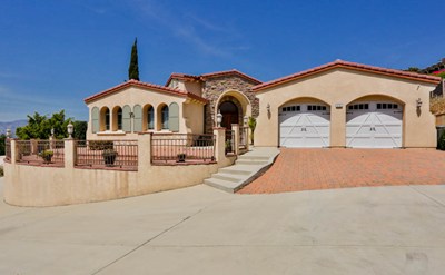 Spectacular single story home with stunning views. Built in 2008, this Italian Villa is perched on top of a knoll situated on a 22,846 sq ft lot. Private rear yard with patio area. Nicely designed floor plan with an inviting double door entry to the gracious foyer and vaulted ceilings. This home features 3 bedrooms and 3 baths, large open floor plan with 2950 sq ft of living space, Open kitchen with stainless appliances, island with breakfast bar & granite counter tops, spacious living room with fireplace, formal dining room, large master retreat with incredible views, large walk in closet. Master bath has a separate tub and shower. Hobby room can easily be used as a 4th bedroom or theater room. Indoor laundry. Wood style floors, crown molding, double pane windows throughout. Recessed lighting. Carpet in the bedrooms. The covered patio is off of the living room and master bedroom. Over sized 2 car garage with epoxy flooring. Dual A/C & forced air.