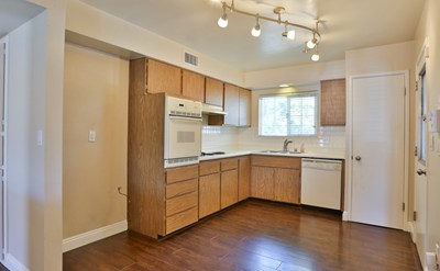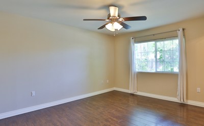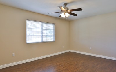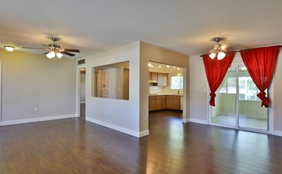 As you pull into the driveway you will notice the immaculate front yard featuring dark rocks, and beautiful manicured palm trees. Walking under the covered porch into the home you are greeted by clean wood floors, fresh neutral paint and large baseboards in the living room. Just off the living room is the spacious dining room; which is next to your built in sun room! Walking into the kitchen you see plenty of cabinet space, clean white appliances, a five burner range, and a window that views out to the shade covered back yard. The master bedroom is spacious with a double door closet and its own bathroom. Down the hall is the large second bedroom, that has a ceiling fan and a double door closet. Just outside is the second bathroom with a white vanity, and a shower/tub combo. The backyard features a covered patio, low maintenance concrete & rocks give this yard a clean feel. There is also lots of trees providing shade and pretty greenery. Plus there is a small grassy area perfect for your pets to relax in the sun. This home is in a great location, your community features a pool, spa, sauna, and clubhouse. Plus conveniently located near a grocery store, bank, hospital, restaurants, and many more activities!