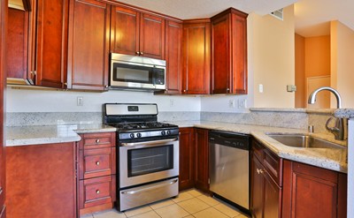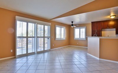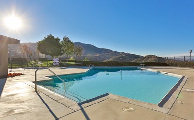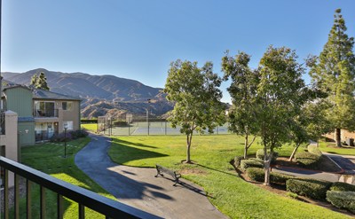 This single story condo, on the second story, captures all of the beautiful views of the Cleveland National Park, mountains and city light views. With 2 bedrooms and 2 bathrooms this condo in Corona under $300k is the perfect starter home! Step into the living room with high ceilings, tile flooring and plantation shutters. The dining area and kitchen are located just off the living room in this open floorplan. The dining area has a lighted ceiling fan and plantation shutters, while the kitchen features cherry wood colored cabinets, granite countertops, farm style sink and stainless steel appliances. The first bedroom features a full bathroom directly attached. Both bedrooms feature white tile flooring, plantation shutters and huge closets. The first bathroom features an update bathroom with matching free standing sink and cabinets, mirror and wall mounted cabinet. The second bathroom is custom designed tub & shower with tiled walls and free standing sink and cabinets. The private patio has amazing views of the Cleveland National Forest, mountains, and city lights as well as the community center and amenities. The laundry space is also located here. The community amenities include basket ball and tennis courts, pool & spa, gym, clubhouse, dog park, walking trail, 1 assigned parking space, and water and trash. Don't miss out!