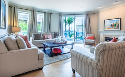 Spacious, sunny, beach condo with sand and ocean views! 3 bedrooms and 2 full bathrooms, large master suite features walk-in closet, jet tub, separate shower, dual sinks, and marble tiles. The gourmet kitchen with granite counters overlooks the open living room, which features a dining area, gas fireplace, two balconies, gorgeous herringbone patterned wood floors, and ocean views. Two guest bedrooms, inside laundry, and formal entry. Plus 2 side-by-side parking spaces and a storage locker. Community features pool, spa, gym, community room, and the expansive sun deck with sweeping ocean views, and direct beach access. This is truly beach living at its finest!