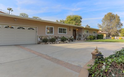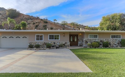 Hollywood's legendary actor and stuntman Roydon Elwood Clark's prior home (153 film credits). Entertainer's dream property in beautiful rustic neighborhood surrounded by mountains, trees and sweeping country views. Open and bright floor plan, Large kitchen with tiled counters, flat built in gourmet range open to living room, gorgeous large fireplace rock wall, remodeled bathrooms w/stone tiled walk in showers, new interior paint, brand new Berber carpet, central air, large over sized two car garage with work benches and storage, electronic opener, automatic sprinklers, large front yard with paved driveway, RV parking, Backyard paradise with rejuvenating tear drop swimming pool with electronic pool cleaner. Excellent neighborhood. Roydon worked with and was good friends with Hollywood icon John Wayne. He was the legendary actor Sean Connery's stunt double in The Rock. Roydon was James Garner's career stunt double in The Rockford Files, Maverick and many other films. Incredible property!