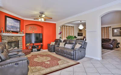 This is the one you've been waiting for!! Horse property in the highly sought after community of Arabella Ranch. Rare opportunity to own this flat usable lot. No slope what so ever. Enter past lush landscape and upgraded hardscape into double doors to spacious formal living room with crown molding. Gorgeous chandelier. Kitchen and open family room with fireplace. Perfect for entertainment. Kitchen houses upgraded new extended granite counter top and beautiful back splash. 24/24 tile flooring. Main floor bedroom with shower bath to include wall to wall closet doors. Ceiling fans in every room. Upstairs 3 bedroom and master bedroom. Spacious master suite with a great master bath and large walk in mirror closet doors. Master has an upgraded separate shower and soaking tub, dual sink All bedrooms have upgraded carpet. Upstairs laundry room with high cathedral ceiling with wide hallways giving a great feeling of open space. Property offers two side gates, both sides may be used as RV access. Backyard with low maintenance and beautiful water fall. 4 - 48ft by 30 ft corrals to house your favorite horses all situated on the right side of property leaving lots of free space. Sprinklers on timer, one switch to operate outdoor electrical lighting. Some grassy area, fruit trees and lots of concrete. Currently many animals on premises, but you would never of known, clean and tidy. No HOA. Assessable to all freeways, 60-15 and 10. Must see to really appreciate!